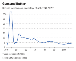 Military spending also increased as military armaments accumulated in the post-war period. In the years between 1950 to 1960, France doubled their military spending from 11 billion to 22 billion, West Germany from 0 to 22 billion, the United Kingdom from 23 to 29 billion, and the United States from 69 to 168 billion [1]. The need for a permanent armament reserve for potential war against the Soviet forces proved to be a constant in the Cold War economies that would arise in the years after World War 2. Likewise, this stirred production levels to meet these new demands. With the increases in production, fresh new labor was needed to sustain it. Luckily, many troops from the war provided such manpower necessary to sustain these new production levels. They were absorbed into the economy with relatively ease and Western Europe experienced unemployment levels that were at historical lows. Deputy Commissioner Robert J. Myers of the Bureau of Labor Statics writes in 1964: